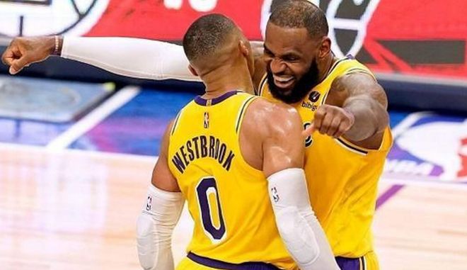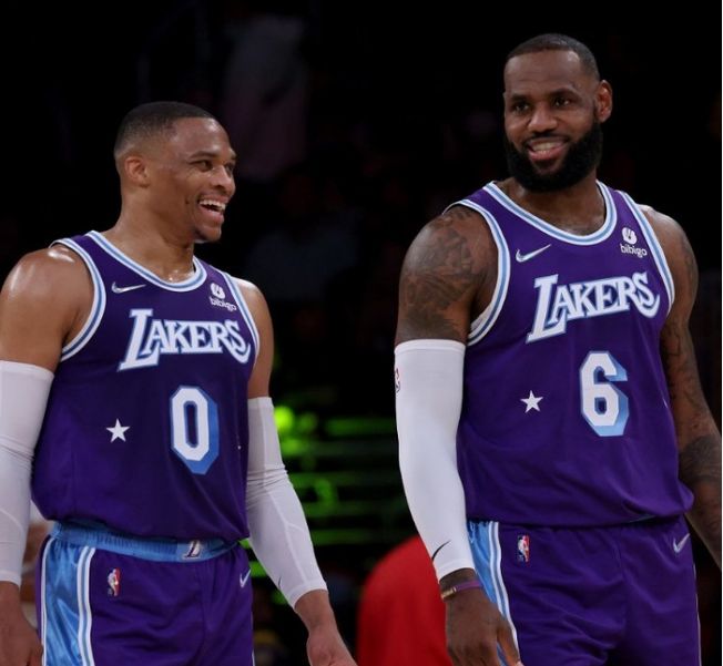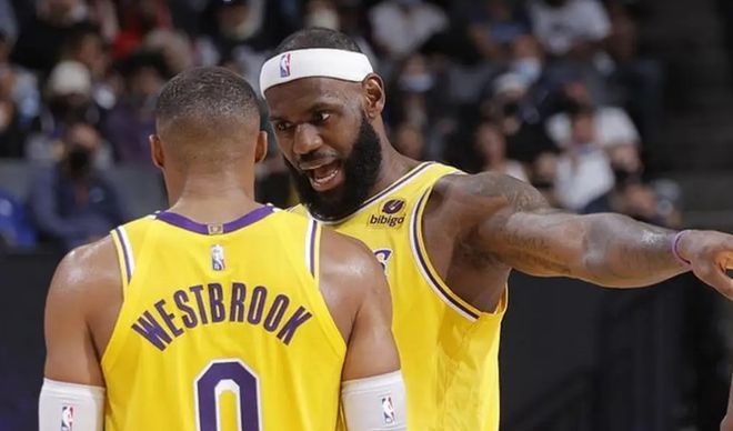 其一,威少與當時的詹眉打法不兼容,導(dǎo)致湖人三巨頭無法形成化學(xué)反應(yīng)。當時傳言湖人想要交易來歐文,并且是詹姆斯在幕后推動交易來歐文,而要完成交易就要送走威少。對于如此傳言,詹姆斯本人曾經(jīng)予以否認,在采訪時詹姆斯還經(jīng)常表示“要威少去做自己”,但該記者認為實際詹姆斯并沒有在背后給予威少支持。
